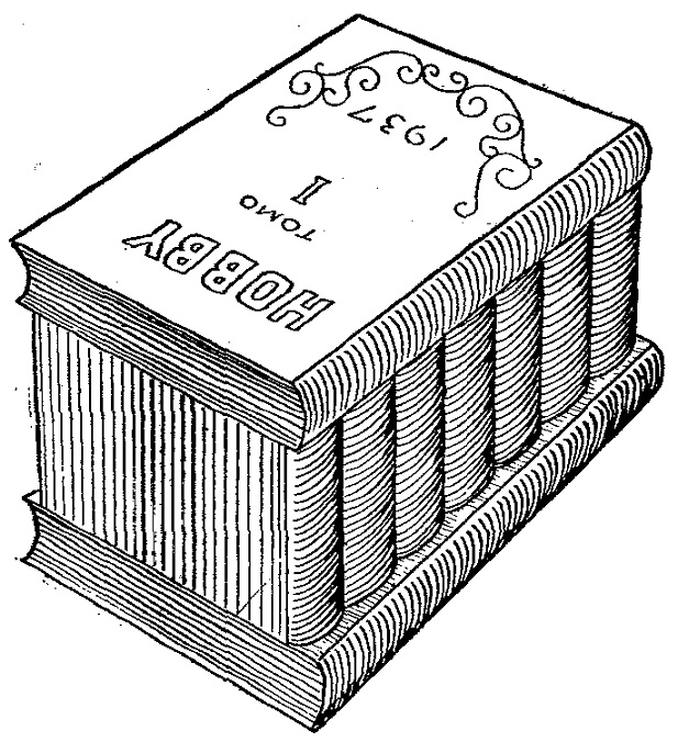 Lo mismo se hará con los que imitan los libros del frente, que deben encolarse en la cara anterior dé la caja rectangular, menos uno, que debe correrse hacia abajo, quedando de tal manera, que estando la caja cerrada no pueda moverse, por impedírselo el libro de la base, cuyo lomo debe sobresalir 1/2 cm.; para cumplir este efecto.