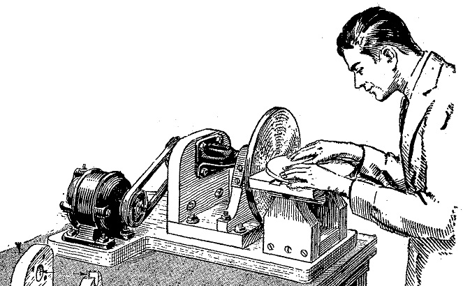 En cuanto al disco lijador, que es de metal., se consigue en las casas bien surtidas del ramo de ferretería. Se lo podría substituir con uno de madera provisto de papel de lija, pero el resultado no sería muy satisfactorio y tendría el inconveniente del recambio frecuente del papel de lija.