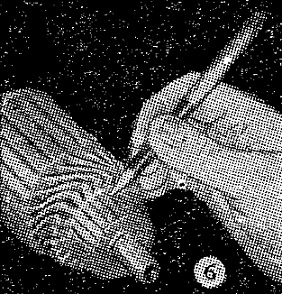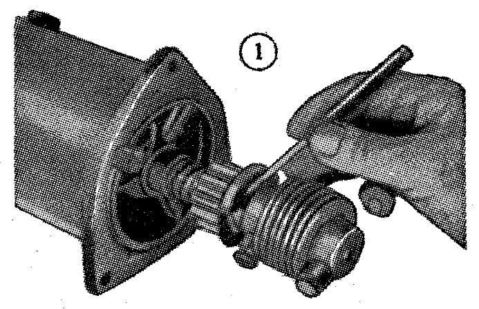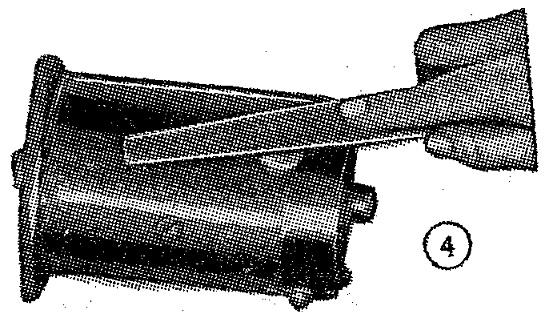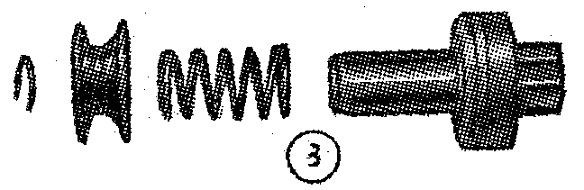 Si al apretar el botón de arranque se nota poco efecto en las luces y se oye un zumbido neto, indica que el engranaje del arranque no engrana con el del volante. En autos con dispositivos de arranque como el indicado en la figura 1, la solución es lavar el engranaje y el eje con querosene y dejarlo secar al aire; no hay que usar aceite aquí. Al revisar, es bueno asegurarse de que la chaveta actuada por el resorte, indicada por el destornillador, no está enganchada en el resorte, ya que esto evitaría la conexión.