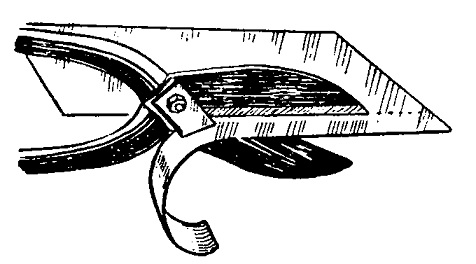 He aquí cómo cortar láminas metálicas sin que éstas lastimen las manos. Un trozo de flete de bronce colocado en falsa escuadra y con un agujero a la medida del perno de la tijera de cortar hojalata, será muy útil si se lo coloca debajo de la tuerca de la tijera y contra él apoyará la hoja de metal que se va cortando. Esto evita que la misma se levante y lastime las manos, como ocurre si no se adopta la precaución que hemos sugerido.
